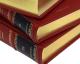 Переплет ручной работы изготовлен из натуральной кожи специальной выделки, тиснение переплета золотой фольгой.